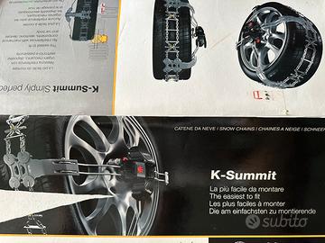 Catene per Auto KONIG K-SUMMIT K23 by Thule NUOVE MAI USATE MAI ESTRATTE DALL'INVOLUCRO ORIGINALE, con scatola originale di cartone esterna oltre la sua in tessuto rigido per l'appunto, mai tirate fuori, letteralmente come da negozio. IL MODELLO K23 SI ADATTA ALLE SEGUENTI MISURE: 13": 195/80-13 - 205/75-13 14": 175/80-14 - 185/75-14 - 205/70-14 - 215/65-14 - 235/60-14 15": 175/75-15 - 185/70-15 - 195/65-15 - 215/60-15 - 235/55-15 16": 195/60-16 - 205/55-16 - 215/55-16 - 225/50-16 - 235/50-16 17": 205/50-17 - 225/45-17 - 235/45-17 - 245/40-17 - 255/40-17 - 265/40-17 18": 205/45-18 - 215/40-18 - 225/40-18 - 255/35-18 - 265/35-18 - 295/30-18 19": 215/35-19 - 225/35-19 - 245/30-19 - 255/30-19 - 265/30-19 20": 225/30-20
