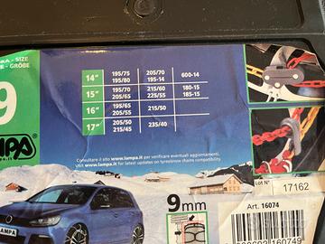 Vendo catene auto Lampa taglia 9 nuove mai usate, l’adesivo della confezione si è sciupato stando nel bagagliaio. Compatibili con diverse misure di cerchi e gomme. Vendo per cambio auto e non piu compatibili.