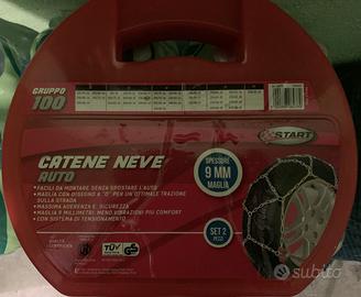 Catene da neve mai utilizzate per l'occasione, della Start da 9 mm. Lista misure compatibili in foto. Ritiro a mano a Lodi o si può organizzare ritiro con corriere a VS spese, previo pagamento anticipato o in contrassegno. Prezzo trattabile 50 €.