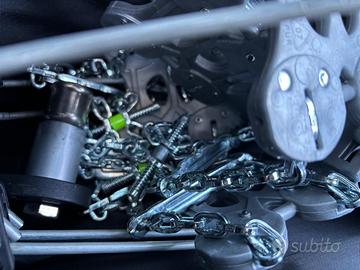 Dotazione completa: catene, chiave, adattatori bulloni (17/19/21/22 mm) e borsa originale.
