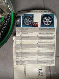 Catene da neve a rombo da 9 mm (maglia compatta), con cavo flessibile e tensionamento autobloccante. Custodia rigida con istruzioni di montaggio. Art. 1607.8 – misura 12.