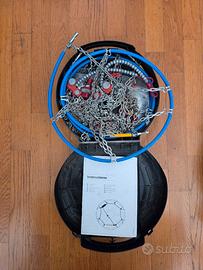 Vendo catene da neve König CG-9 (Gruppo 50), top di gamma per auto, usate due volte. Compatibile con le seguenti misure ruota: 165/80-13 155/80-14 185/60-14 165/60-15 175/70-13 165/70-14 195/55-14 175/55-15 185/65-13 175/65-14 155/70-15 195/45-15 Principali Vantaggi (Autotensionanti): Tecnologia Autotensionante König: Dimentica la scomodità di fermarti dopo pochi metri per stringere le catene. Grazie al sistema di tensionamento automatico brevettato, si stringono da sole mentre guidi, garantendo la massima sicurezza e facilità d'uso. Ingombro Ridotto (9mm): Compatibili con la maggior parte dei veicoli moderni che hanno poco spazio tra la gomma e le parti meccaniche del passaruota. Protezione per Cerchi in Lega: Include elementi in nylon colorato da applicare ai punti di aggancio per proteggere i tuoi cerchi in legadai graffi durante l'uso. Omologazioni di Legge: Certificate UNI, TÜV e Ö-Norm (pienamente a norma di legge e valide per l'obbligo di catene a bordo).