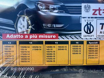 Catene da neve nuove, mai usate. Ancora sigillate. Per ruote dal diametro da 13 a 16 varie misure. Marca Emi pro Premium