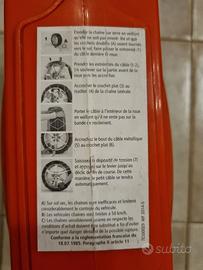 Vendo catene da neve weissenfels Clack&Go UNIQA M32 L080, con catena da 9mm autotensionante grazie al tensionatore automatico, molto facile e veloce nel montaggio e smontaggio, si presentano in perfette condizioni come visibile dalle foto. Misure pneumatici compatibili consultabili nella foto n.2. N.B. queste catene sono adatte a chi non vuole graffiare i cerchi in lega in quanto sono prive di particolari che attraversano il cerchione. Disponibile per la spedizione. Non esitate a contattarmi per ulteriori informazioni.