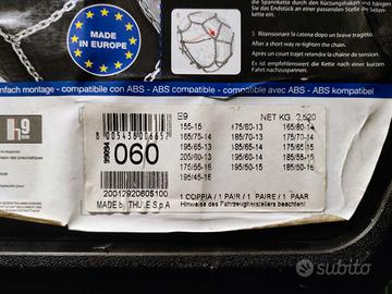 Vendo catene da neve modello E9 (prodotte da Thule), spessore 9mm, ideali per auto con spazio limitato tra pneumatico e parti meccaniche.