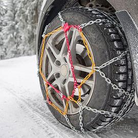 Goodyear G9: catene da neve a rombo per massima sicurezza e comfort Le catene da neve Goodyear G9 sono una soluzione di alta qualità per affrontare l'inverno in totale sicurezza. Queste catene, vendute in coppia, sono progettate con una maglia compatta a sezione "D" da 9 mm che garantisce elevata resistenza e lunga durata. Il montaggio è rapido e semplice grazie al cavo flessibile con tensionamento autobloccante, che assicura un'installazione sicura e senza sforzi. Il cavo laterale interno è ricoperto di PVC colorato, mentre l'aggancio esterno a vista facilita ulteriormente il posizionamento delle catene. Perfette per vetture dotate di sistema ABS, queste catene riducono al minimo rumore e vibrazioni, offrendo un'esperienza di guida confortevole anche nelle condizioni più difficili. All'interno della confezione troverai istruzioni dettagliate per un montaggio facile e veloce. Hai ancora dubbi? Guarda il nostro video tutorial! La struttura a rombo: la vera innovazione La struttura a rombo delle catene da neve si riferisce al design della maglia che forma un disegno a forma di rombo attorno allo pneumatico. Questo tipo di struttura è particolarmente apprezzato e utile per diversi motivi: 1. Distribuzione uniforme del carico. La forma a rombo garantisce una trazione uniforme, migliorando il controllo del veicolo su neve e ghiaccio. 2. Aderenza ottimale. Grazie alla configurazione a rombo, le catene mantengono una maggiore superficie di contatto con il terreno, offrendo un grip più efficace rispetto a modelli con disegni meno complessi, come quelli a scala o a X. 3. Maggiore stabilità e sicurezza. Riduce lo slittamento e migliora la stabilità, rendendo la guida più sicura in condizioni difficili. 4. Comfort di guida. Attenua vibrazioni e rumore, offrendo un'esperienza di guida più confortevole anche su superfici accidentate. Mai usate, vendo per cambio auto. Coppia di catene. Nuove costano almeno 50€. L'oggetto si trova in zona Marconi a Roma ma posso spedire