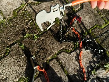 Non ho la scatola originale. Le catene sono nuove e mai usate, se non per provarle.