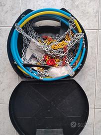 Vendo catene da neve EGLEMTEK per auto Gruppo 80 mai usate. Le misure compatibili sono presenti nella seconda immagine. Vendo poichè incompatibili con la mia auto.