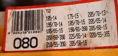 Misure di pneumatici compatibili indicate sulla confezione e ben visibili in foto.