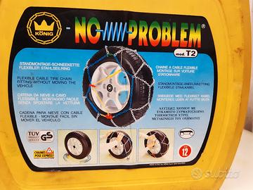 vendo catene da neve Konig no problem modello T2 080 mm 12 a cavo flessibile montaggio facile senza spostare la macchina, in confezione integra gialla di poco ingombro 35x30 usate poche volte.