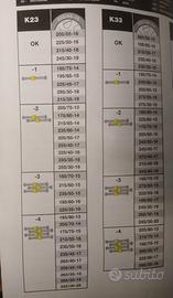 195/80-13, 205/75-13, 175/80-14, 185/75-14, 205/70-14, 215/65-14, 235/60-14, 175/75-15, 185/70-15, 195/65-15, 215/60-15, 235/55-15, 195/60-16, 205/55-16, 215/55-16, 225/50-16, 235/50-16, 255/45-16, 205/50-17, 225/45-17, 235/45-17, 245/40-17, 255/40-17, 265/40-17, 205/45-18, 215/40-18, 225/40-18, 255/35-18, 265/35-18, 295/30-18, 215/35-19, 225/35-19, 245/30-19, 255/30-19, 265/30-19, 225/30-20