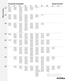 IL MODELLO K22 SI ADATTA ALLE SEGUENTI MISURE: