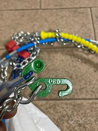 Vendo catene da neve KONIG - K7 spessore 7 mm usate una sola volta, condizioni perfette. Adatte ad automobili medie come le ultime VW Polo o Golf serie VII, o Touran seconda serie e molti altre ancora, da verificare sul libretto auto con le misure pneumatici.