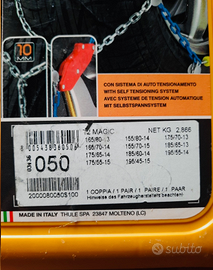 Vendo catene da neve originali König T2 Magic, condizioni nuove mai utilizzate. 📌 Condizioni 🆕 Mai usate, pari al nuovo 📦 Completo di confezione e kit originale (se presente) 🧼 Conservate correttamente, nessun segno di usura ✔️ Pronte all’uso 🧠 Dettagli prodotto Marca: König Modello: T2 Magic Sistema di montaggio rapido e intuitivo Ideali per neve e ghiaccio, alta affidabilità e sicurezza Compatibili con diverse misure di pneumatici (verificare compatibilità) 🚗 Perché sceglierle Le König T2 Magic sono tra le catene più apprezzate per: facilità di montaggio stabilità su neve e ghiaccio qualità costruttiva premium sicurezza certificata 📦 Spedizione Imballaggio accurato Spedizione tracciata Massima protezione del prodotto ⚡ Prezzo 💬 Prezzo leggermente trattabile per acquirenti seri