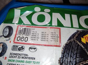 Catene da neve Konig ZIP 12 060 misure: 175-13165-14155-15 165/75-14185/70-13175/70-14 195/65-13185/65-14180/65-365 200/65-340195/60-14175/65-15 185/55-15195/50-15195/45-16 Manuale di montaggio presente. Mai usate. Solo scambio a mano in Modena