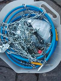 Catene da neve nuove di stecca per gomme con cerchio 15....vendo a 30 euro non trattabili... SONO NUOVE E MAI MONTATE.... Unica cosa non ci sono le misure scritte sopra perché andata via..... Comunque provate sulla mia con cerchio 16 ma sono leggermente piccole... Ottima marca e di ottima fattura