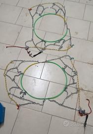 Coppia di catene da neve tipo Rombo da 12mm "Lampa" con libretto d'istruzioni, certificazione e kit composto da un paio di anelli per la riparazione.