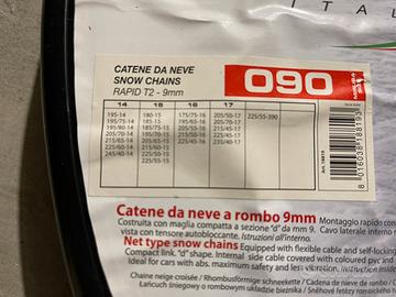 Vendo catene da neve nuove mai usate per cerchi da 13-14-15-16-17 pollici. Porta targa universale € 15. Astenersi affaristi, perditempo e domande inutili. Ritiro a mano o spese di spedizione a carico dell’acquirente.