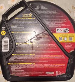 Catene da neve marca WX-9 da 9 mm misure delle gomme compatibili indicate nella terza immagine. Mai utilizzate, acquistate e custodite all'interno dell'auto, così come previsto, nel periodo invernale, dal Codice della Strada. Vengono vendute solo ed esclusivamente poiché non compatibili con la mia attuale autovettura.