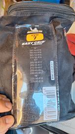 Vendo catene da neve composite Michelin Easy Grip Evolution (modello EVO 7), nuove e mai utilizzate, ancora nella loro confezione originale. SPECIFICHE PER RUOTE NON CATENABILI Queste catene rappresentano la soluzione ideale per chi cerca la massima sicurezza sul ghiaccio e sulla neve senza la complicazione delle catene metalliche tradizionali. Caratteristiche principali: Performance: Struttura esclusiva in materiale composito che garantisce un grip ottimale e una guida fluida senza vibrazioni. Montaggio Ultra-Rapido: Si montano e si smontano in pochi minuti grazie al sistema elastico (ideale per chi non ha dimestichezza con le catene classiche). Omologate: Certificate per l'uso in Italia e in Europa (UNI 11313 / ÖNORM). Compatibilità: Alta visibilità notturna grazie al sistema catarifrangente Nighthawk. Condizioni: Il prodotto è nuovo, mai montato su strada. La borsa per il trasporto è integra e include tutto il kit originale. Verificare la compatibilità con le proprie gomme (vedi foto con le specifiche)