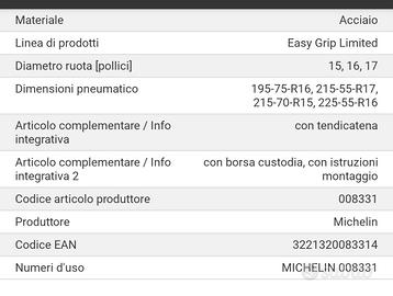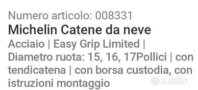 Catene da neve michelin easygrip e11 nuove con borsa...misure come da foto...