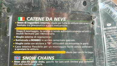 Vendo catene da neve misura 9 ancora in confezione sigillata. La compatibilità è scritta nelle foto. Consegna a mano