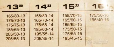 Compatibili con diverse misure di pneumatici, da 165/80 R13 fino a 195/40 R16.