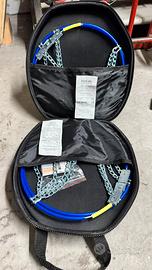Catene da neve per Citroen C3 Aircross con cerchi da 17’’ (ed altre Auto) Nuove comperate l’anno scorso, MAI MONTATE! Vendo per cambio autovettura. Le misure compatibili si leggono sulla foto della confezione.