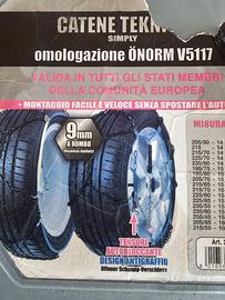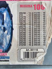 Vendo Catene da neve Teknica Rhutten misura 100 nuove mai montate Di seguito sono riportate le misure di cerchio e pneumatico compatibili: 205/80- 14 215 - 14 215/70 - 14 225/70 14 235/60 - 14 195/75 15 195/80 - 15 205/70 15 215/65 - 15 215/70 15 225/60 - 15 225/65 - 15 235/55 - 15 235/60 - 15 255/45 - 15 205/65 - 16 215/55- 16 215/60-16 225/50-16 225/55 - 16 235/50 - 16 245/45- 16 205/55- 17 215/50 - 17 215/55 - 17 225/45 - 17 225/50 - 17 235/45 17 245/40 - 17 215/45 - 18 225/40- 18 225/45 - 18 235/40 - 18 245/35 - 18