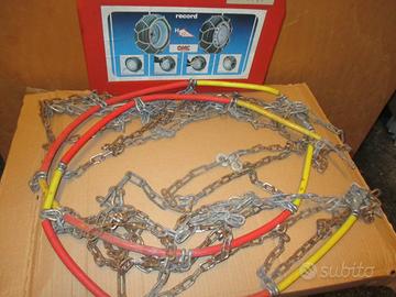 Catene da neve OMC Record H12 54A Catene da neve Catene da neve OMC Record H12 54A, H12mm,Catena con battistrada a rombo in acciaio speciale legato (UNI EN 10020) MnNi,Ottima tenuta su neve e ghiaccio grazie all'alto numero di rombi del battistrada ,Montaggio facile senza spostare il veicolo,Utilizzabile da entrambe le parti per una maggior durata Maglie di regolazione sulla chiusura esterna per adattare meglio la catena anche a pneumatici di marche diverse o con differenti gradi di usura Molle di tensione in acciaio per mantenere la catena elastica e ben aderente al pneumatico. PER LE SEGUENTI DIMENSIONI DI GOMMA: 155-12 560-12 600-12 145-13 135-14 165-/70-12 155/70-13 165/65-13 160/65-340 175/60-13 Articolo usato realmente un paio di volte, dotato di propria valigetta originale ed istruzioni originali per il montaggio. Conservato sacralmente lontano da agenti atmosferici,sole,umidità. € 15,00