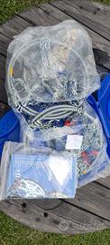 Catene da neve omologate UNI 11313 gruppo 6, pari a gruppo 60, nuove mai utilizzate, le ho tenute degli anni in auto ma solo ora ho scoperto che sono della misura sbagliata per le mie ruote, per fortuna/sfortuna non ho mai avuto bisogno di installarle altrimenti me ne accorgevo prima, la scatola sembra un po' vissuta perché è sempre stata in bagagliaio assieme ad ad altri oggetti. Per le misure guardare nelle foto.