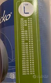 Calze da neve omologate ed antigraffio, adatte per qualsiasi tipo e forma di cerchio (in lega, non in lega, ed anche non catenabili).