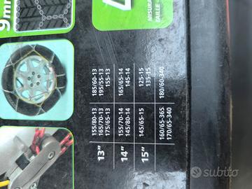 catene da neve mai usate solo confezione leggermente danneggiata perché conservata nel portabagagli. no perditempo solo persone interessate