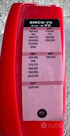 Set di catene da neve per auto, conservate nella loro custodia rossa. SMC9-70 mm9 nuove mai usate, per la misura delle ruote vedere etichetta in foto.