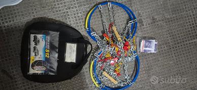 Catene da neve marca GEV, spessore maglie 12 millimetri, ideali per suv, fuoristrada e monovolume ecc., per misure pneumatici in gruppo 25 come da scheda dettagliata in foto. Nuove, mai utilizzate (neanche per prova), complete di borsa e istruzioni (comprate solo per averle a bordo da normativa ma mai andato sulla neve). Non spedisco e prezzo non trattabile (al prezzo di “calze” in tessuto, vere catene d’acciaio): solo ritiro a Roma zona Aurelio-Bravetta o - in orari ufficio - Laurentino (Vigna murata-Stefano Gradi).