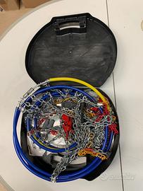 Catene da neve 9 mm di ingombro interno , ideale per i veicoli senza particolari limitazioni tra pneumatico e parti meccaniche. Fornite in una pratica valigetta . Montaggio facile e veloce con cavo flessibile facilitato dal tensore auto-bloccante. Massimo comfort e sicurezza .