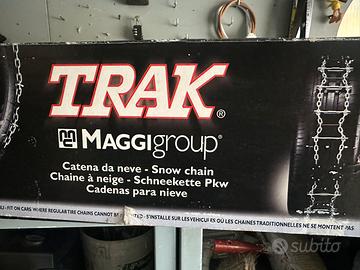 Vendo catene da neve, TRAK, usate poche volte. Emologate per: 14”: 185/80-14, 195/75-14, 205/70-14, 245/60-14 15”: 195/70-15, 205/65-15, 225/60-15 16”: 165/75-16, 175/70-16, 185/65-16, 205/60-16, 225/55-16, 245/50-16 17”: 185/60-17, 215/50-17, 245/45-17, 275/40-17, 315/35-17 18”: 215/45-18, 245/40-18, 275/35-18, 325/30-18 19”: 245/35-19, 275/30-19, 285/30-19, 335/25-19