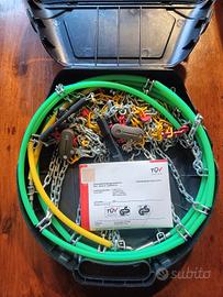 Coppia catene da neve a maglia compatta, 9 mm di ingombro interno.
