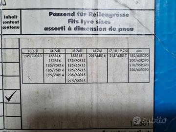 vendo catene da neve per auto non catenabili della SPIKES SPIDER modello Quick, misura 2,5 con adattatori per bulloni ruota da 19mm, usate ma in buone condizioni, complete di tutto.