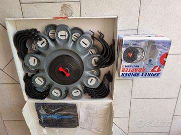 Le catene da neve più popolari di sempre, montabili su molti tipi di veicoli. La SPIKES-SPIDER COMPACT è facile da installare anche su nuclei delle ruote strette, il che lo rende l'unica alternativa per molti veicoli per superare l'inverno in sicurezza. Inoltre, grazie al design unico di SPIKES-SPIDER COMPACT, tutti i componenti di usura possono essere facilmente sostituiti singolarmente se necessario. Il concetto di SPIKES-SPIDER COMPACT soddisfa i requisiti delle catene da neve in tutto il mondo e si è dimostrato milioni di volte. La forma delle punte e gli artigli in plastica aumentano la trasmissione della potenza durante la frenata e l'accelerazione su ghiaccio e neve. Il punto culminante: i cuscinetti pivot brevettati consentono una facile regolazione alle diverse dimensioni dei pneumatici, in modo che il Compact, con le sue 4 diverse dimensioni, copra tutti i pneumatici di auto di grandi dimensioni. Ogni modello SPIKE-SPIDER è essenziale più resistente delle catene da neve di lunga durata.