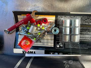 Si montano con tre veloci operazioni e sale da sè sul pneumatico. Gli elementi di tensione sul battistrada permettono di calzare bene su diverse misure di pneumatici e diversi gradi di usura degli stessi. Si fissa senza alcuna fatica grazie al moltiplicatore di forza e la leva di sicurezza evita rischi di apertura. Att.ne: Le catene vanno sempre montate nelle ruote dell'asse di trazione indicato nel libretto di "Uso e manutenzione" proprio del veicolo. Verificare che le catene siano compatibili con la misura delle gomme dell'asse di trazione. Fare particolare attenzione nei veicoli a trazione integrale o mista, rispettare sempre quanto previsto dalla casa costruttrice.