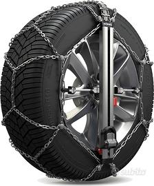 dimensioni come da seconda immagine 9 mm di ingombro Bottoni in nylon di protezione per cerchi in lega (applicazione facoltativa) Omologazioni/Certificazioni/Conformità: Ö-Norm 5117, UNI 11313, TÜV Coppia catene da neve di alta qualità ideali per le condizioni invernali Trattabili