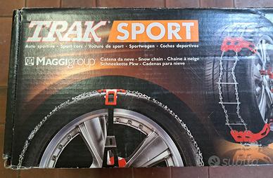 Catene da neve MaggiGroup modello Trak SPORT 208, adatte per auto sportive ribassate. Nuove, mai utilizzate. Adatte per le seguenti misure 175/80 R13 235/60 R13 195/65 R14 215/60 R14 165/70 R15 175/65 R15 195/60 R15 205/55 R15 225/50 R15 255/45 R15 285/40 R15 175/60 R16 185/55 R16 205/50 R16 225/45 R16 255/40 R16 195/45 R17 205/45 R17 225/40 R17 215/35 R18 225/35 R18 255/30 R18 265/30 R18