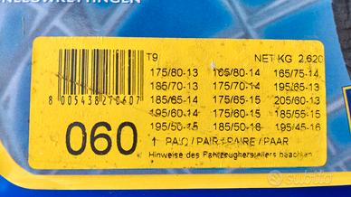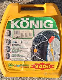 1. Catene da Neve Originali Konig 9mm (colore Blu), Made in Italy, Nuove e mai utilizzate, Gruppo 060 compatibilità (come da foto) per varie misure: - 175/80 R13 - 185/70 R13 - 195/65 R13 - 205/60 R13 - 165/75 R14 - 165/80 R14 - 175/70 R14 - 185/65 R14 - 195/60 R14 - 175/65 R15 - 175/60 R15 - 185/55 R15 - 195/50 R15 - 185/50 R16 - 195/45 R16 ---- PREZZO: 40€ --------------------------------------------------------------------------- 2. Catene da Neve Maggigroup, Made in Italy, Nuove e mai utilizzate, Gruppo 90 compatibilità (come da foto) per varie misure: - 195/80 R14 - 205/70 R14 - 195/70 R15 - 205/65 R15 - 215/60 R15 - 225/55 R15 - 195/65 R16 - 205/55 R16 - 205/60 R16 - 215/50 R16 - 205/50 R17 - 215/45 R17 - 235/40 R17 ---- PREZZO: 30€ --------------------------------------------------------------------------- 3. Catene da Neve 9mm, Nuove e mai utilizzate (ancora sigillate), Gruppo 48S compatibilità (come da foto) per varie misure: - 185/70 R13 - 195/65 R13 - 205/60 R13 - 165/75 R14 - 175/70 R14 - 185/65 R14 - 195/60 R14 - 185/55 R15 - 195/50 R15 ---- PREZZO: 20€ ---------------------------------------------------------------------------- 4. Catene da Neve Originali Konig 10mm (colore Giallo), Made in Italy, Utilizzate una sola volta, Gruppo 030 compatibilità (come da foto) per varie misure: - 155 R12 - 560 R12 - 600 R12 - 165/70 R12 - 145 R13 - 155/70 R13 - 165/65 R13 - 175/60 R13 - 135 R14 - 175/50 R14 - 135/70 R15 ---- PREZZO: 25€ ---------------------------------------------------------------------------- Pagamento in contanti e ritiro in zona o eventuale spedizione a carico del compratore. CONTATTATEMI SOLO SE VERAMENTE INTERESSATI.