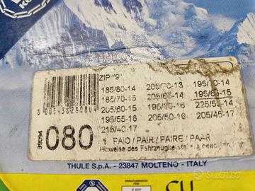 vendo due catene da neve usate ma in buone condizioni una compatibile con le seguenti misure: 185 80 R14 205 70 R13 195 70 R14 185 70 R15 205 65 R14 195 65 R15 205 60 R15 195 60 R16 225 55 R14 195 55 R16 205 50 R16 205 45 R17 215 40 R17 L'altra compatibile con queste misure: 195 14 205 70 14 215 60 15 195 70 15 205 55 16 225 50 15 225 55 14 185 15 205 65 15 225 45 16 225 60 14 prezzo cad