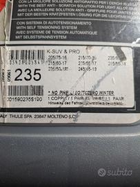 Catene da neve Konig modello K suv e pro, misura 235, spessore 12 mm, autotensionanti. Misure pneumatici idonei come da foto. Usate una volta.