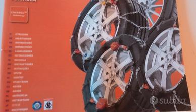 vendo catene da neve weissenfels giugiaro gruppo 8 (vedere misure nella tabella allegata) . Mai usate come da foto. Le ho sempre tenute nel bagagliaio per ottemperanza della legge. Le vendo perchè ho cambiato auto