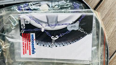 Vendo coppia di catene da neve a montaggio rapido Weissenfels, modello Newtech 9. Si tratta di catene di alta qualità con ingombro interno ridotto a soli 9mm, ideali per auto moderne con spazio limitato tra ruota e passaruota e perfette per veicoli dotati di sistema ABS.