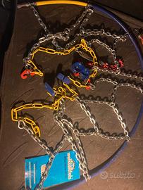 La catena da neve a montaggio rapido con prestazioni professionali. Per minibus, pick-up, 4X4 e trasporto leggero. Cavo interno con anima di acciaio con rivestimento protettivo in polimero. Maniglia in gomma elastica con impugnatura ergonomica. Maglia compatta con sezione a “D” a grande aderenza, in acciaio cementato di alta qualità. Dispositivo di chiusura autobloccante. Misure pneumatici compatibili consultabili anche nella sezione Download di Weissenfels