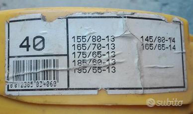 Misure compatibili: 175/70 R12, 150/80 R13, 155/80 R13, 165/70 R13, 175/65 R13, 185/60 R13, 195/50 R13, 195/55 R13, 145/80 R14, 165/65 R14, 185/50 R14, 135/80 R15, 145/70 R15, 155/60 R15, 165/55 R15, oltre a misure metriche storiche (R315, R340, R365).